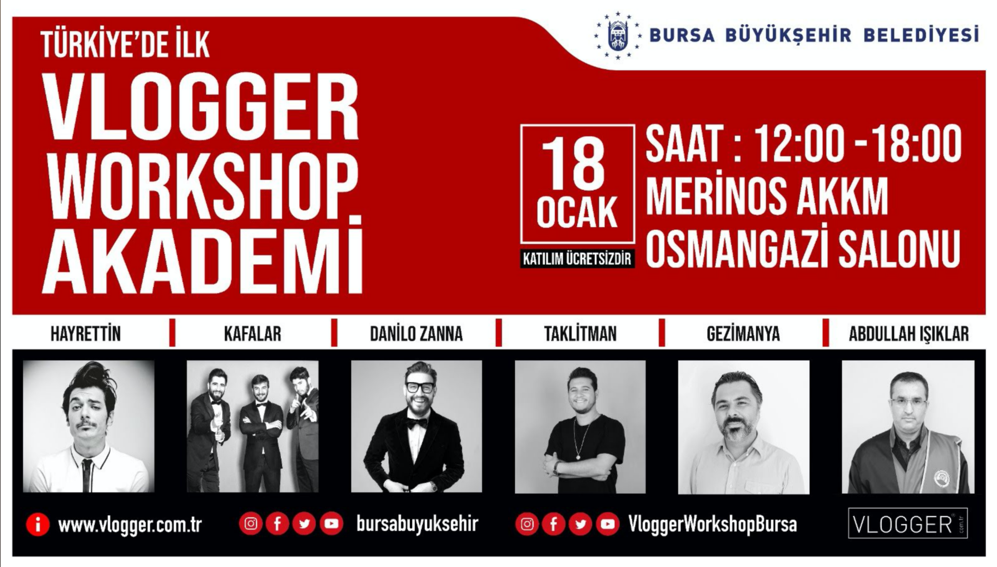 Türkiye’de kurumsal olarak ilk kez düzenlenen Vlogger Workshop Akademi, Türkiye’nin önemli Vloggerlarını Bursalılarla buluşturdu. Ünlü Vloggerlar Hayrettin, Kafalar, Gezimanya, Taklitman ve Danilo Zanna, vlogger dünyasının tüyolarını genç takipçileriyle paylaştı.
